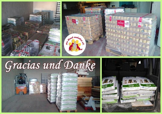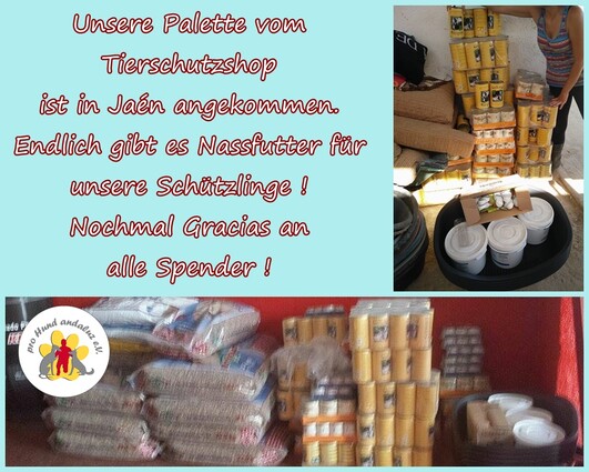 Die Futtersprenden, die Sie alle so zahlreich aus unserer Tierschutzshop - Wunschliste gespendet haben, sind in Jaén eingetroffen.