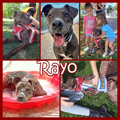 Rayo zählt leider zu den Hunden in Spanien, die aufgrund ihrer Rasse ein schweres Schicksal in Spanien teilen. Er ist mit ca. 1,5 Jahren in die Tötungsstation gekommen, wahrscheinlich weil er zu lieb für die Hundekämpfe war. Unsere Kollegen konnten ihn aus der Tötungsstation retten und seitdem lebt er im Tierheim.