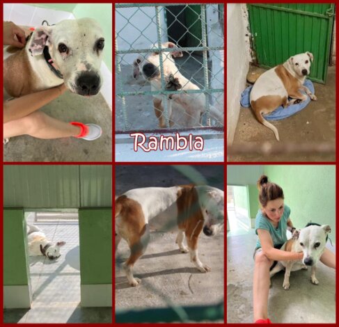 Rambla wurde 2017 aus der städtischen Perrera gerettet. Damals war sie noch nicht sozialisiert und lebte zunächst alleine in einem Zwinger, da die Sorge bestand, sie könne sich nicht mit anderen Hunden vertragen, nachdem sie in der Perrera um ihre Ressourcen kämpfen musste. Mit der Zeit und durch das Engagement zweier spanischen Kollegen gelang Rambla an andere Hunde zu gewöhnen. Schließlich konnte sie sich mit Sky anfreunden, und die beiden teilen nun einen Zwinger und verbringen viel Zeit miteinander.
